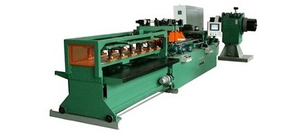 SKJ硅钢片横剪线由双轴开卷装置,双伺服电机送料装置。一台V冲剪装置(伺服驱动),一台45度斜剪装置(伺服驱动),一台135度斜剪装置(伺服驱动,送片传动装置,双铁柱自动叠片机组成,全线采用PLC控制,触摸屏显示,输入剪切片型,剪切尺寸,剪切数量后,设备自动生产。